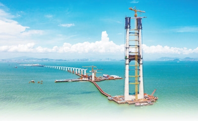 伶仃洋大橋東索塔施工現場。張政攝